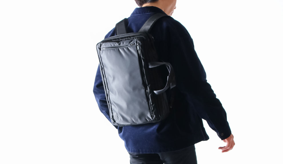 定期的に防水スプレーをするのは面倒だと思っている方も多いのではないでしょうか。ご安心ください。この鞄は半永久的に撥水性が持続します。従来の撥水素材は、繊維組織にコーティングやラミネートをすることによって撥水性を実現していますが、この加工では経年劣化していまいます。対して、吉田カバンオリジナル生地”DRY SUMMIT”は繊維組織内部にシリコンポリマーを染み込ませ、糸の一本一本に防護被膜を形成させているので、半永久的な撥水性と耐久性を可能にしています。