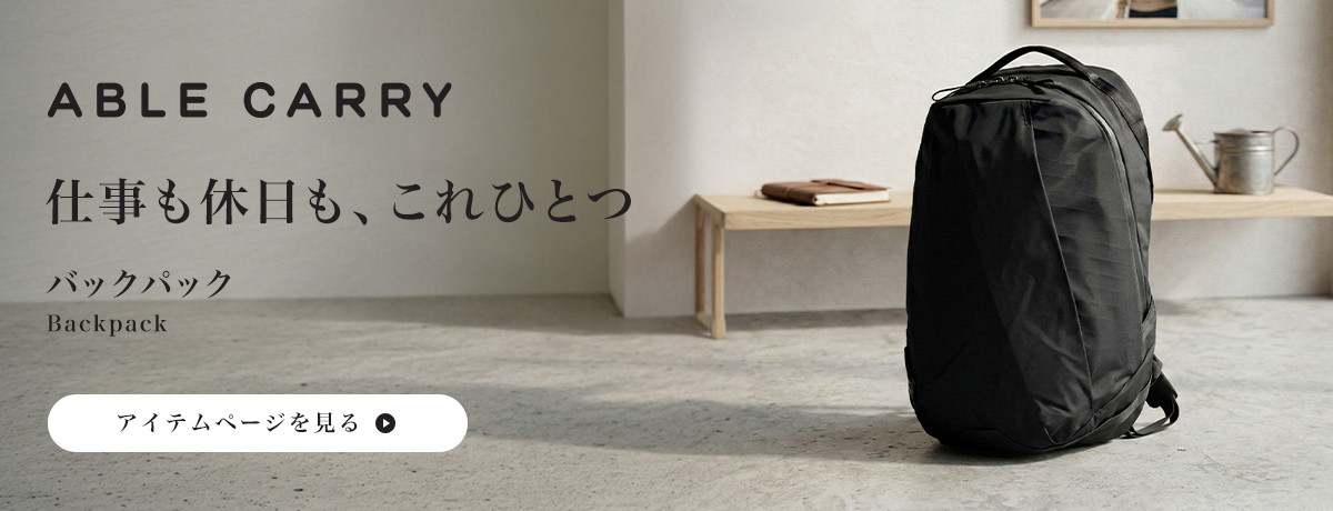 大都市と自然が融合する香港で誕生した新進気鋭のブランド『ABLE CARRY/エイブルキャリー』。こちらはブランドの顔とも言えるフラッグシップモデル「DAILY PLUS」。"無重力バックパック"と称された抜群のフィット感と快適な背負い心地は独自構造「Aフレーム」によるもの。洗練されたミニマルなデザインでありながら、荷物を取り出しやすく使いやすい機能満載の都市型バックパックです。