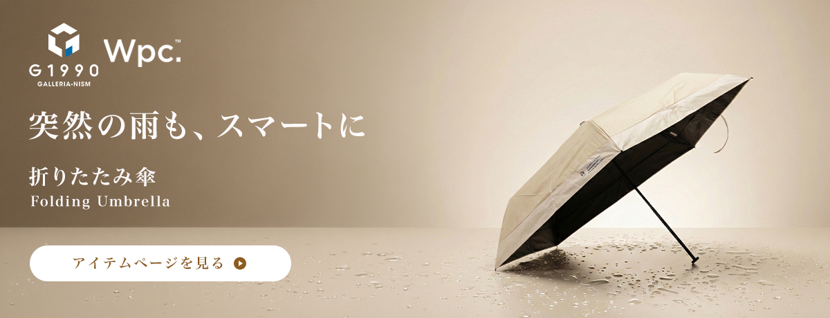ポケットサイズで超軽量、ハイスペック晴雨兼用傘。様々な世代・ジャンルの人々に“傘を持つことへの美意識”を発信し続ける『Wpc.』とG1990がコラボした折りたたみ傘。超軽量設計でポケットにも収まるコンパクトさが魅力。遮光率・UVカット率100%、UPF50+の完全遮光に加え、遮熱・撥水・耐水性も兼備。晴雨兼用で日常から旅行まで活躍します。