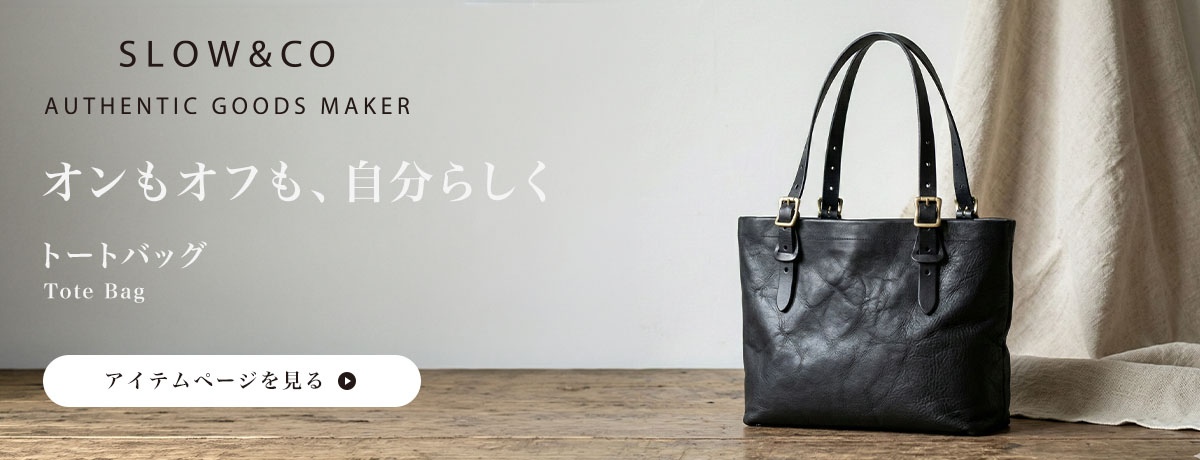 かつての人気モデルが当店限定で復刻。SLOWの中でも素材の雰囲気、デザインともに柔らかいシリーズ『rubono/ルボーノ』のトートバッグ。かつて人気を博しながら生産終了となったモデルが、当店限定で特別に復刻しました。革を薄く仕上げることで生まれる、軽くソフト感のある仕上がりが魅力。エイジングを存分に味わえるレザーは、10年後の変化も楽しみな気持ちにさせてくれます。