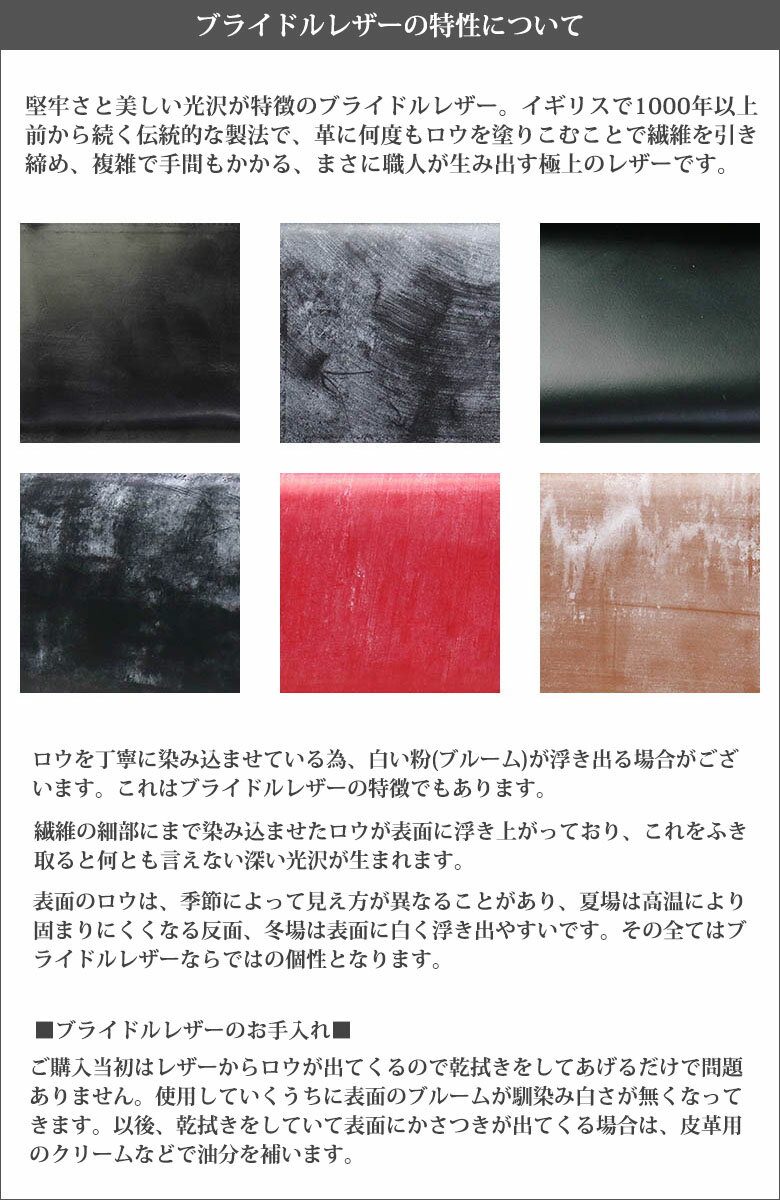 アイテム説明 細部へのこだわりがビジネスシーンを格上げするスリムスクエア型のカードケース。スナップボタンが表に見えないミニマルデザインで、ジャケットに収まる薄型でありながら、名刺が10枚程度収納可能です。ビジネスマンとしての経験値とともに、ブライドルレザー特有の経年変化を楽しめる一品に仕上がっております。