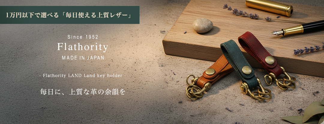 伝統的な製法で化学薬品はつかわず植物性タンニンで時間をかけじっくり鞣された、プエブロという牛革を使用した「LANDシリーズ」のキーホルダー。非常に手間暇をかけて丁寧に製作し、かつ革の自然な風合いも活かされた鞄メーカーならではの上質な仕上がりが魅力。毎日使うものだからこそ選びたい、そんな仕上がりとなっています。