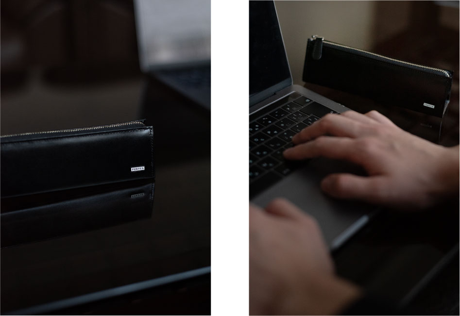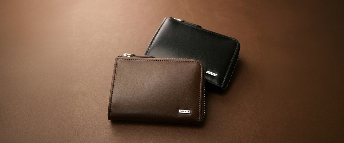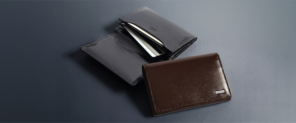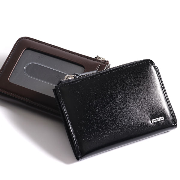艶やかな革の表面に「PORTER」の上品なオリジナルの金属プレートを採用したレザー小物のシリーズ「PORTER SHEEN」。