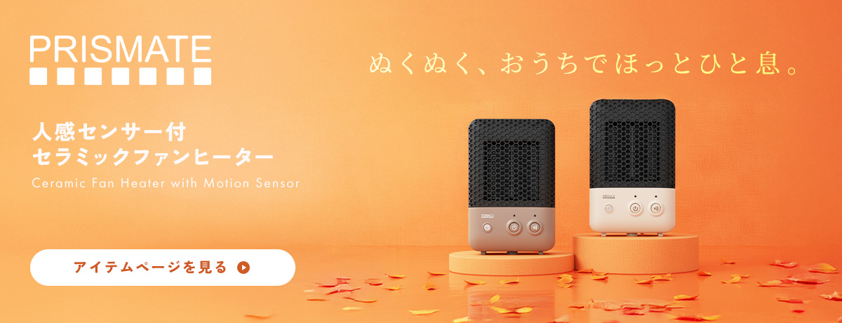 小さなボディと優しい丸みがかわいいミニヒーター。人感センサー機能やオートオフ機能も搭載した、安全・節約設計です。リラックスタイムからお仕事中まで、足元から身体を温めつつ、活性炭フィルターがホコリやニオイを吸着します。