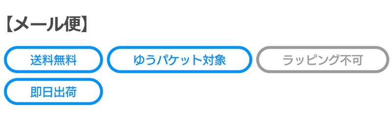 対象の商品は、商品名の【メール便】とこちらのバナーが目印です。